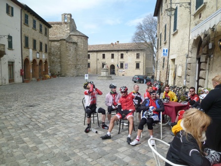 Die traditionelle Harry Route (Longiano-Roncofreddo-Sogliano) steht heute am Sonntag Vormittag am Programm. Harry Amringer, unser Capo in den letzten Jahren, kann heuer nach seinem schweren Schiunfall am Arlberg nicht mit dabei sein. Er hat aber das Trainingslager heuer auch wieder im Vorfeld organisiert. Von hier aus die besten Grüße an unseren Harry und Danke für alles. Ich weiß, dass es ihm eh schon wieder so halbwegs gut geht und wir hoffen, dass Harry im kommenden Jahr wieder mit von der Partie ist.