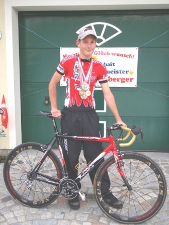 Mit dieser Leistung hat Lukas seinen 2. Rang in der Österreichcupwertung gefestigt und als Draufgabe wurde er an diesem Wochenende auch 2-facher OÖ Landesmeister, da diese Rennen zur Landesmeiterschaft gezählt haben. Am Sonntag gab es ja auch noch das 3-er Mannschaftszeitfahren. Da hat er mit dem Bad Ischler Simon Pirkelbauer und dem Welser Christoph Lindlbauer, die Bronzemedaille in der Ö-Meisterschaft eingefahren. Die zweite Mannschaft mit dem Rieder Matthias Praschl und den beiden Lambachern Michael Fürweger und Daniel Wachholbinger belegten dabei den Vize-Landesmeistertitel und den 6. Rand Österreich. Er ist ja auch seit heuer im Österreichischen Nationalkader und dass große Ziel ist ja die Teilnahme an der im August stattfindenden ASVÖ Jugendtour im Burgenland. Das ist eine der größten Jugendrundfahrten Europas und hat schon Teilnehmer wie Jan Ulrich oder auch Fabian Cancellara gesehen.